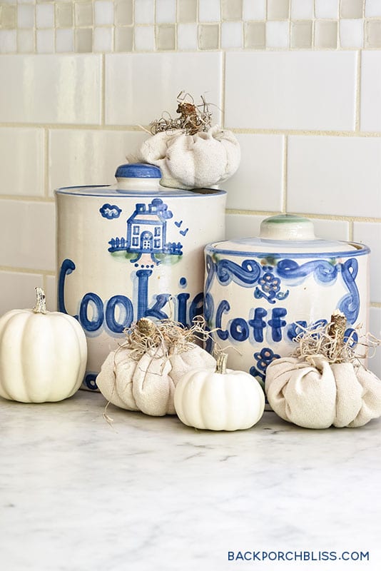 Drop cloth pumpkins can be used in many ways– you could tie a card and use for place cards. They would be pretty on your Fall table or on your mantel.