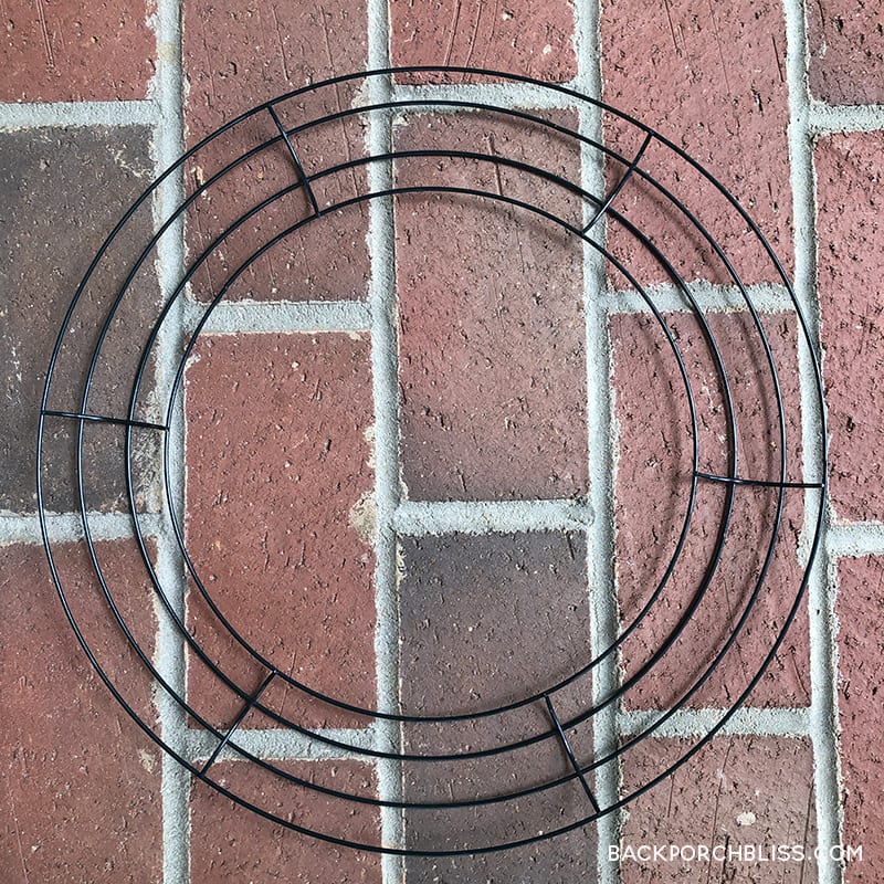 I decided to try making a live wreath for the kitchen, using what I have or could find in my yard. The only thing I bought was this simple, metal wreath form from the dollar store. I saw this: