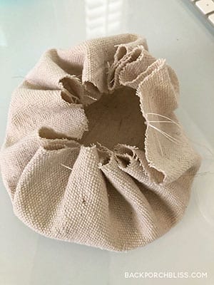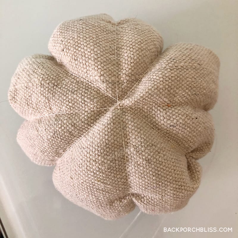 3– Carefully pull the threads and it will gather the top edge of your pumpkin.