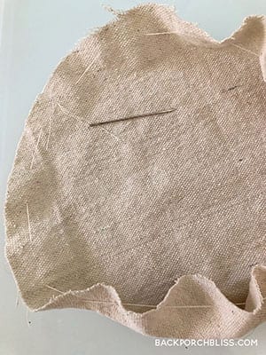2- Use doubled thread and sew a 1.5″ stitch all around the edge of your drop cloth. Do not knot the thread on either end, as you’re going to gather your material using the thread.